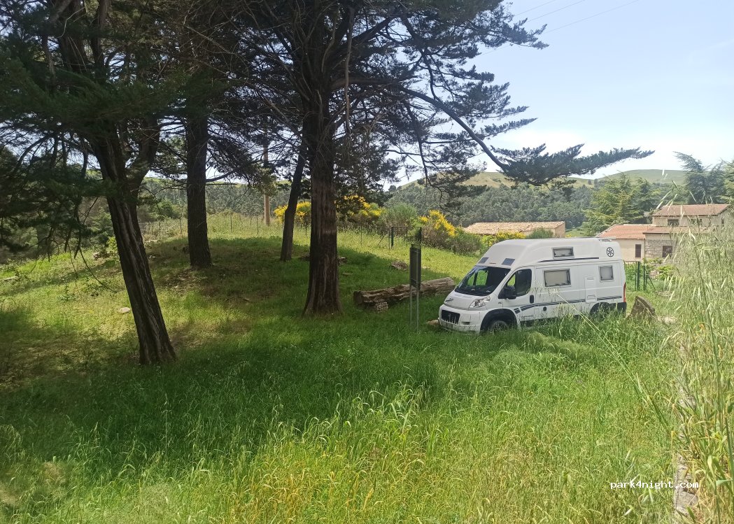 Small clearing on the road leading to the statue and hermitage of S. Rosalia. Flat and shady spot in the morning, at the start of the "women's trail". Very quiet and recommended during the week, I preferred it to the parking lot before the statue at the end of the road.