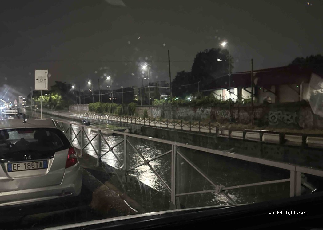 È consentito parcheggiare sulle strade pubbliche, proprio lungo un canale. Sono arrivato tardi e ho trovato molto spazio. Ricordatevi di chiudere lo specchietto retrovisore lungo la strada. A prima vista, la zona sembra piuttosto tranquilla.