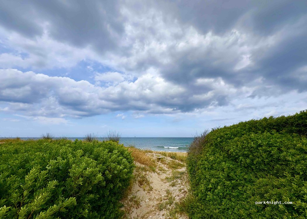 To access the spot you have to follow the sea by crossing the bridge (Google map will not show you on the right side) The spot is located between the pond and the sea, with direct access to the beach just behind the dune. Access to the spot is at the end of a path, a little sandy, but accessible to medium-sized vans and pickup trucks (for example with a Ducato l2h2 without problem).