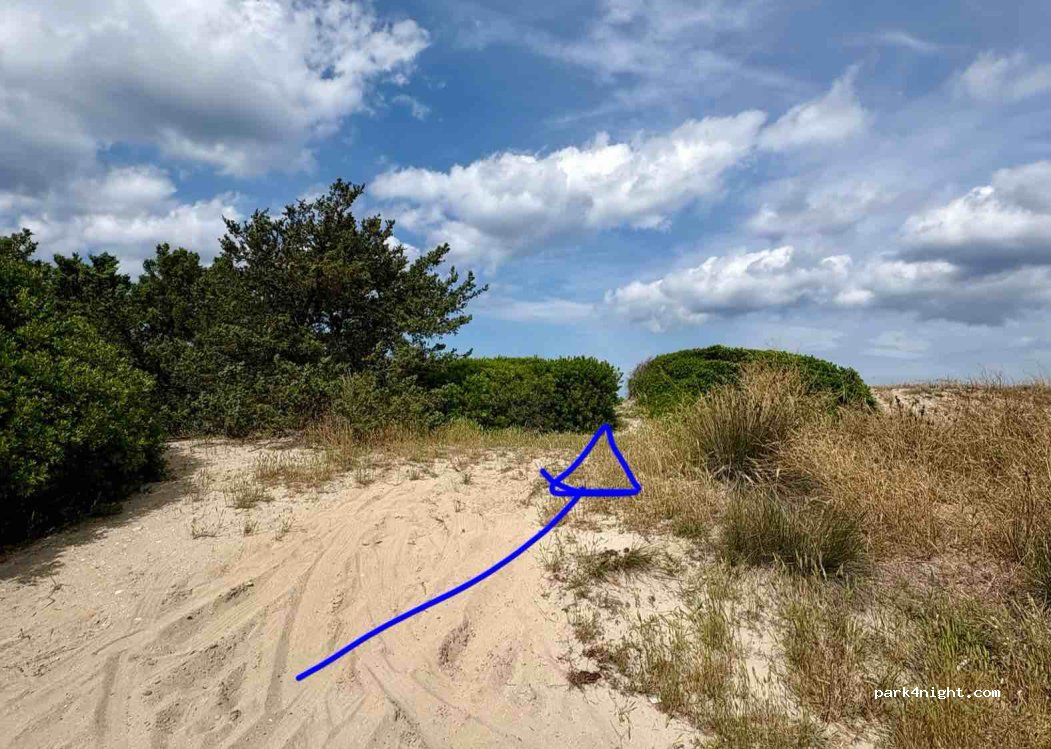Um zum Spot zu gelangen, müssen Sie dem Meer folgen und die Brücke überqueren (Google Maps zeigt Sie nicht auf der rechten Seite). Der Spot befindet sich zwischen dem Teich und dem Meer und bietet direkten Zugang zum Strand direkt hinter der Düne. Der Zugang zum Spot befindet sich am Ende eines Pfades, der etwas sandig ist, aber problemlos mit mittelgroßen Transportern und Pickups (z. B. einem Ducato l2h2) befahrbar ist.