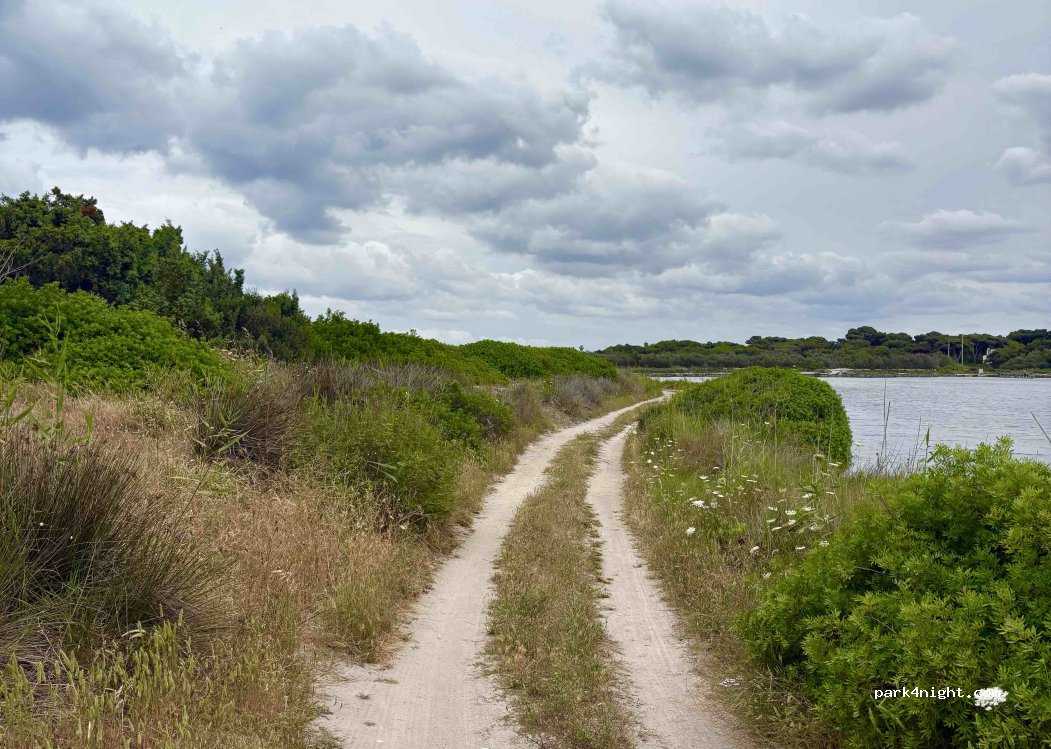El lugar está situado entre el estanque y el mar, hay acceso directo a la playa justo detrás de la duna. El acceso al lugar se encuentra al final de un camino, un poco arenoso, pero accesible para furgonetas y furgonetas medianas (por ejemplo pasé con una Ducato l2h2 sin ningún problema).