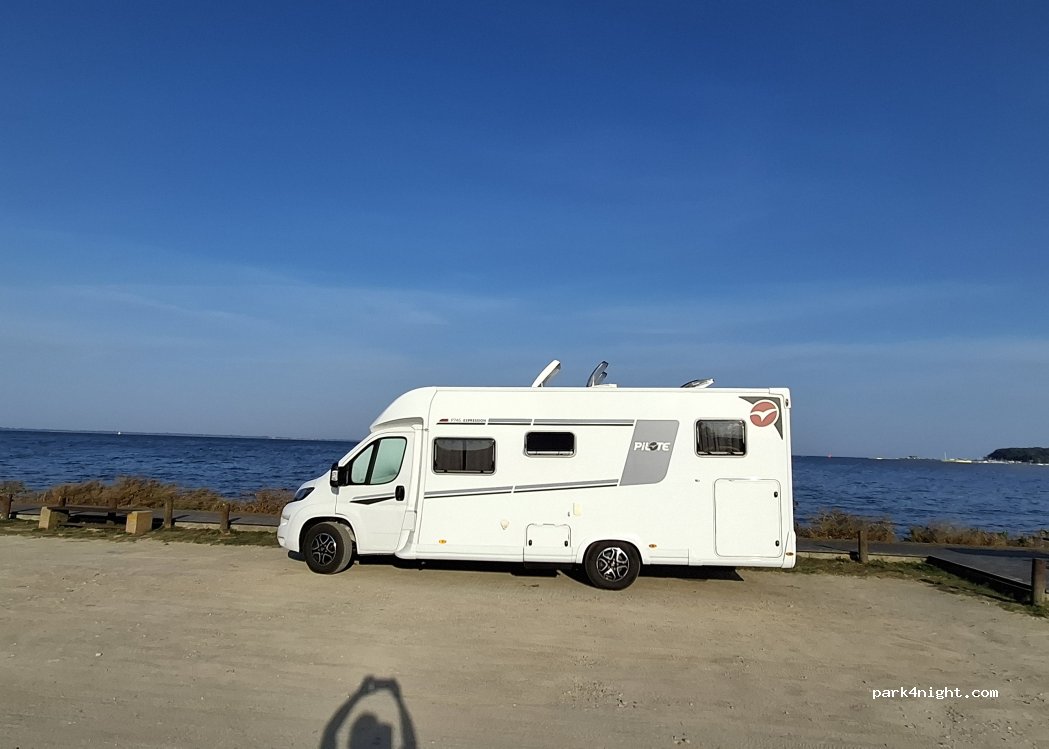 Parking przy samej zatoce. Jest toitoi i ławeczki. Do zatrzymania się na noc ok ale hałasują tiry i pociągi.