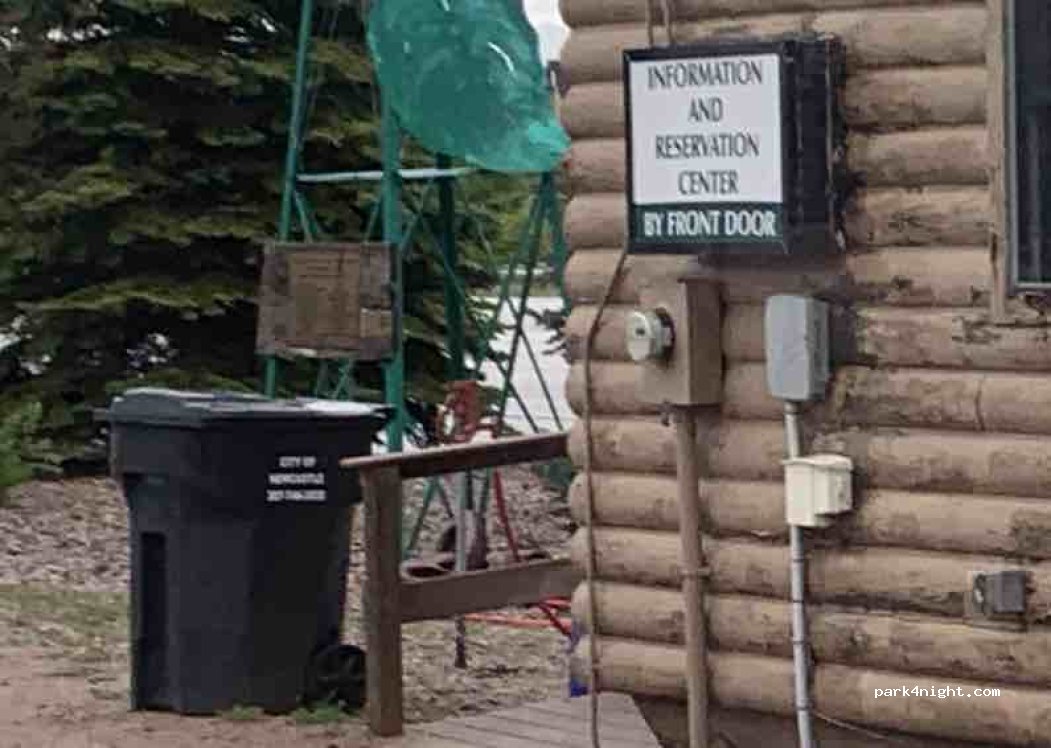 High pressure water spigot beside the visitor centre. Clean to use . Easy access for all. Of course can also get information at the visitor centre of the area. Strong WiFi outside. Thank you to the town.