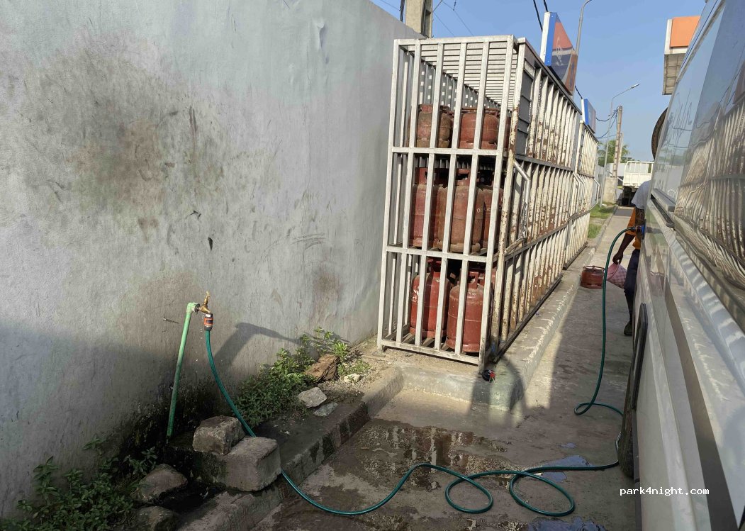 Non-potable water tap at the back of the Ola station. Used to refill vehicle tanks.