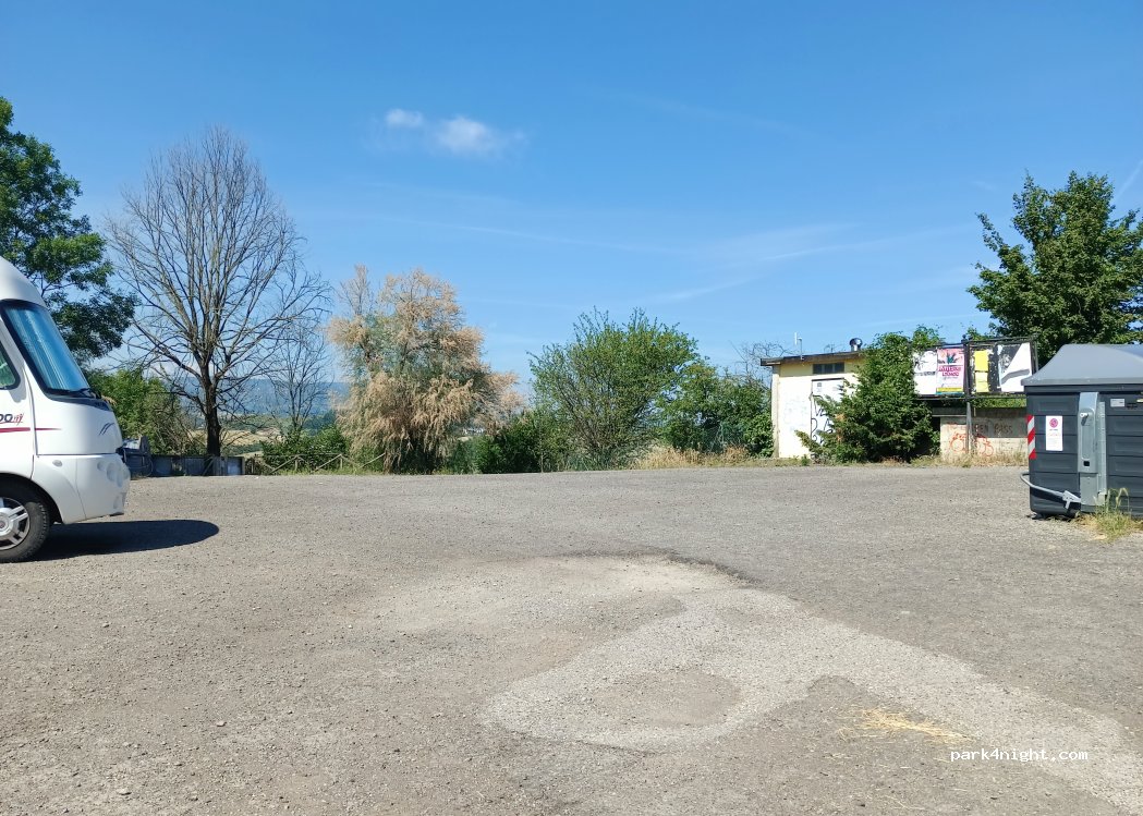 Car park large enough to hold at least 6 campers, near the sanctuary with a bit of a slope but good for spending the night, no prohibition for campers. There are garbage bins and it is lit. No other services. The last 500 meters of road are narrow but there is not much traffic so it is doable.