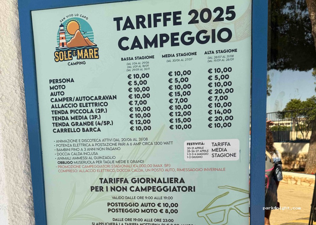 San Vito lo Capo e’ veramente una bella location e questo campeggio ti permette di fruirne a pieno. Piazzole spaziose ed ombreggiate e servizi compresi nel costo di posteggio ad eccetto della corrente elettrica che è veramente cara 7€ al gg!? A due passi dal vivace centro cittadino pieno di locali e negozi.