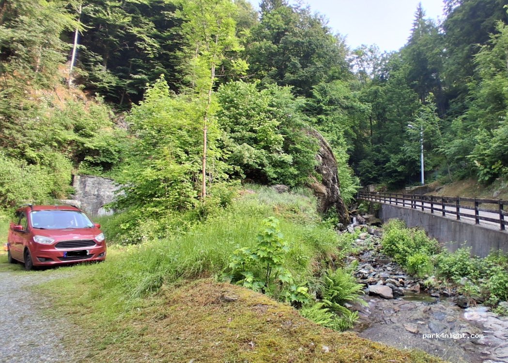 Nachts ist es ruhig. Platz für max. 2 Fahrzeuge.