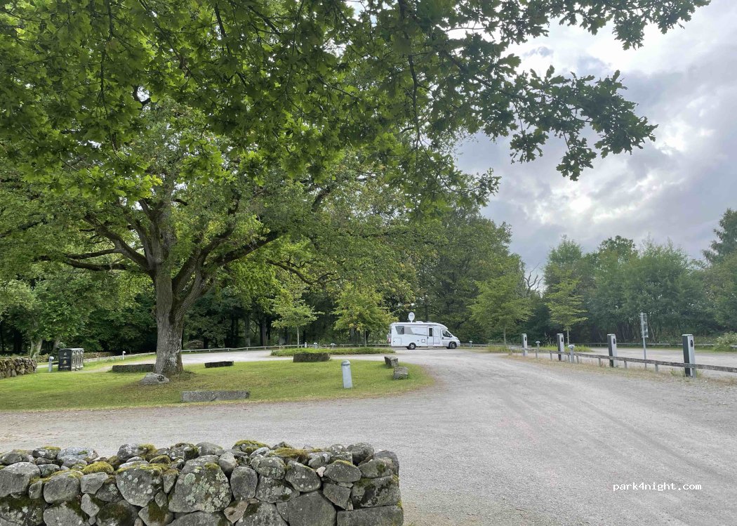 Un lugar encantador y tranquilo en el aparcamiento de Hovdala Slott. Se permite pasar una noche con autocaravana en el aparcamiento con muros de piedra. Un lugar ideal para pasear con los perros.