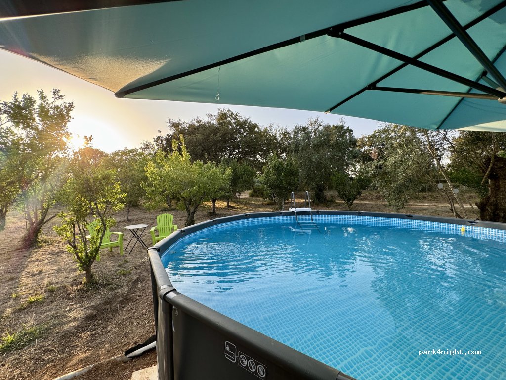 Mucho calor? Tenemos 2 parcelas (extra) con sombra, una piscina de agua salada para refrescarse, una ducha mágica de aguacate y para los niños una piscina plegable.