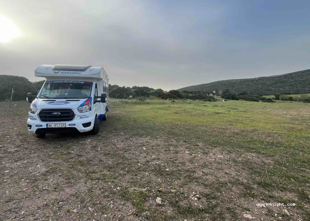 Parkplatz ist leicht abfallend, wenn man quer zum „Hang“ steht passt es auch. Es ist nicht verboten nachts hier zu stehen. Nur kein Camping praktizieren. Stehen über Nacht ist nicht verboten. Bis 7 Uhr alles zurück bauen, dann gibt es kein Problem. Man kann auch bei der Bar Bresu parken (Nacht 20€). Die Bar ist auch klasse. Die Besitzer sind super nett.