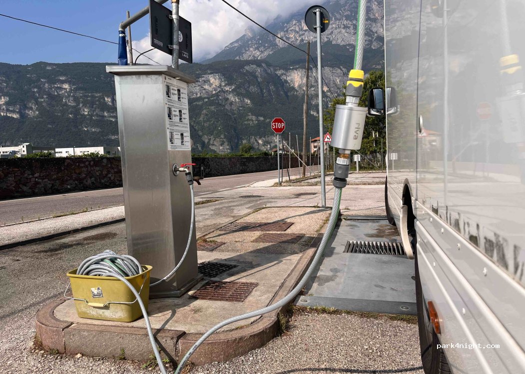 Scarico acque grigie e nere. Carico acqua (bassa pressione, un pochino lento). Vicino autostrada. Gratuito