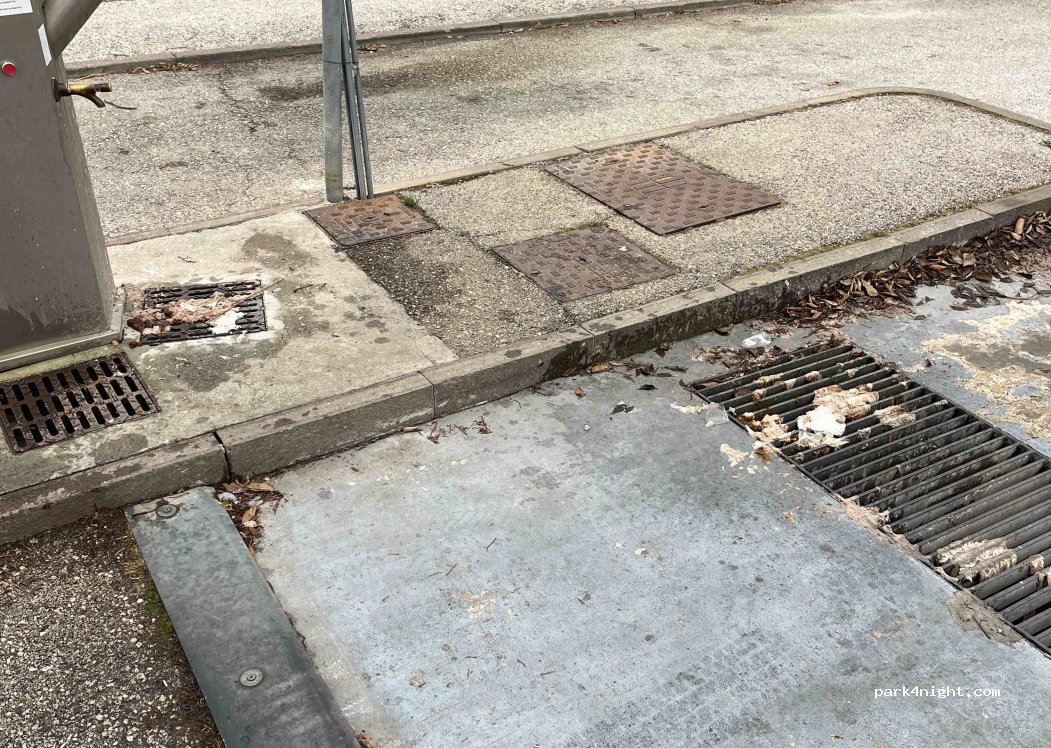 Questa sera verso le ore 19 passo a scaricare con il mio camper l'acqua funziona anche troppo che il risaquo dello scarico continua ad andare ma il problema che è tutto intasato e fuoriesce tutto nel tombino sotto.Peccato un po di manutenzione ogni tanto fatta bene sarebbe ben apprezzata da noi camperisti.