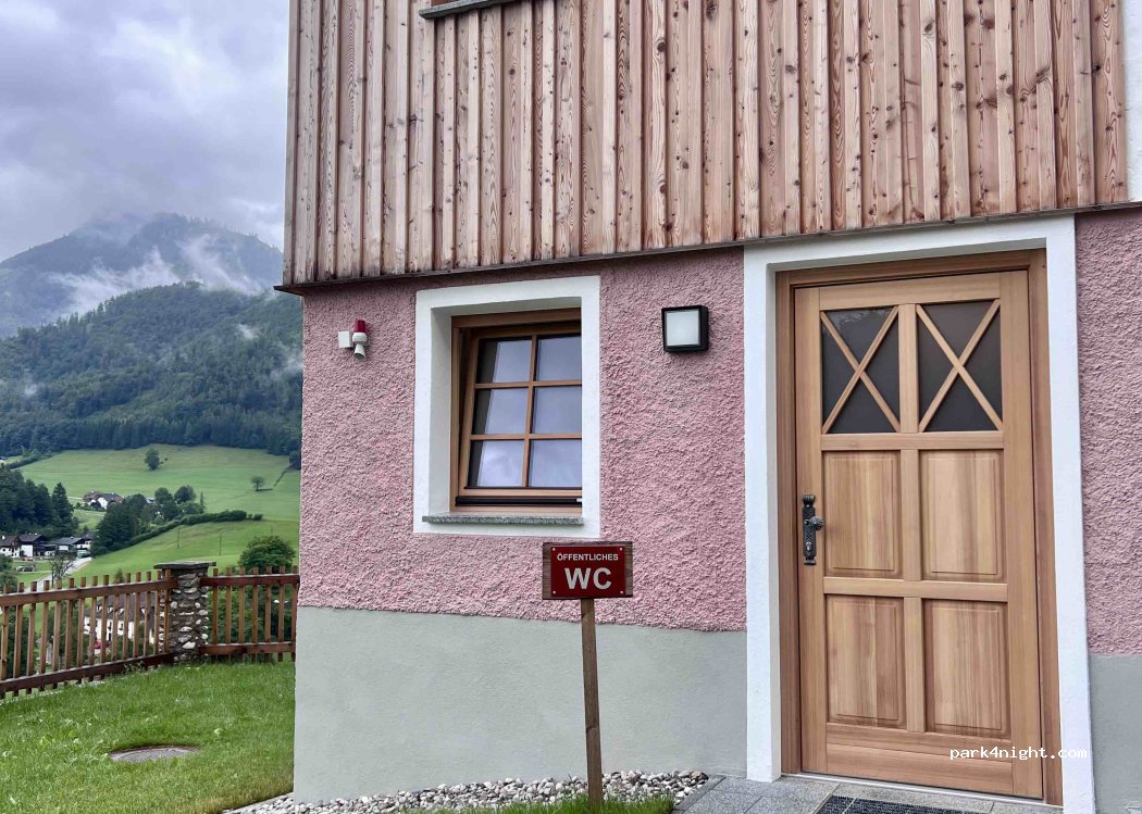 Öffentlicher Parkplatz unterhalb der Wallfahrtskirche Frauenstein mit toller Aussicht und öffentlichen WC (ganz neu), dort auch Möglichkeit Wasser in Flaschen aufzufüllen.