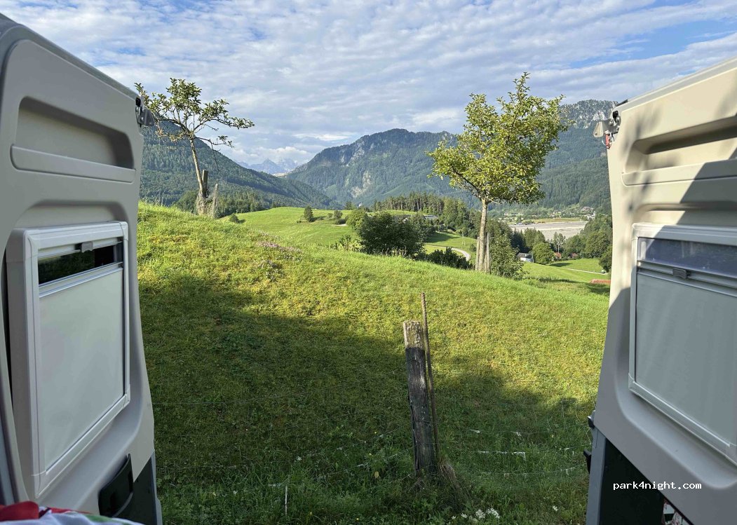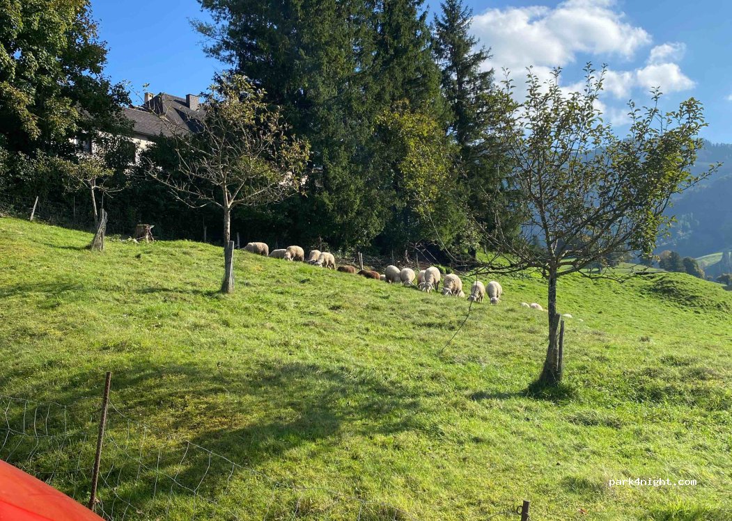 Super endroit calme en semaine et un peu plus fréquenté le dimanche. Environ 2 places à plat et le reste un peu penché. Bonne exposition au soleil et joli vu sur les montagnes. Proche maison et église. Parking juste en face des moutons