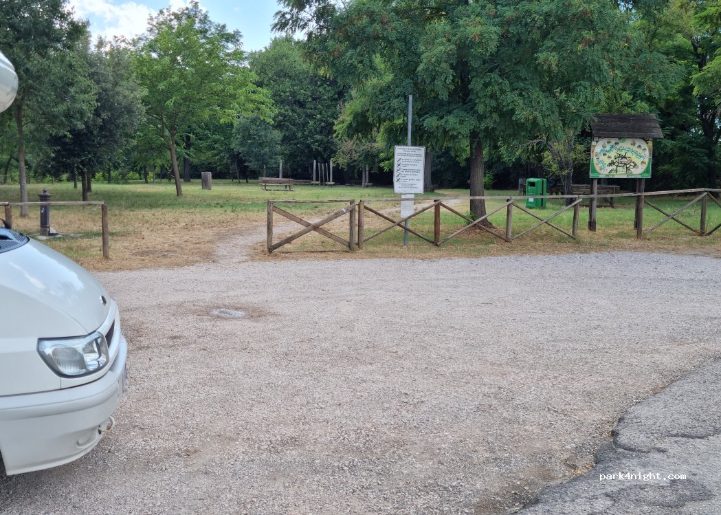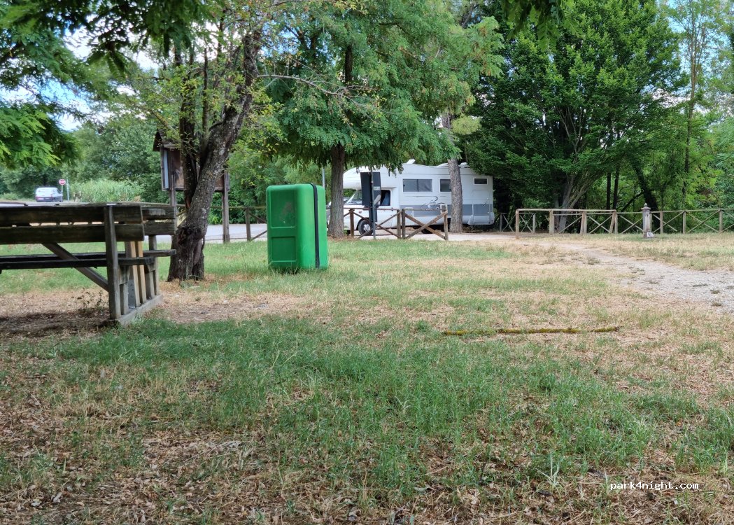 Aparcamiento cerca del parque infantil y zona de picnic para hacer una parada antes o después de visitar Asís.