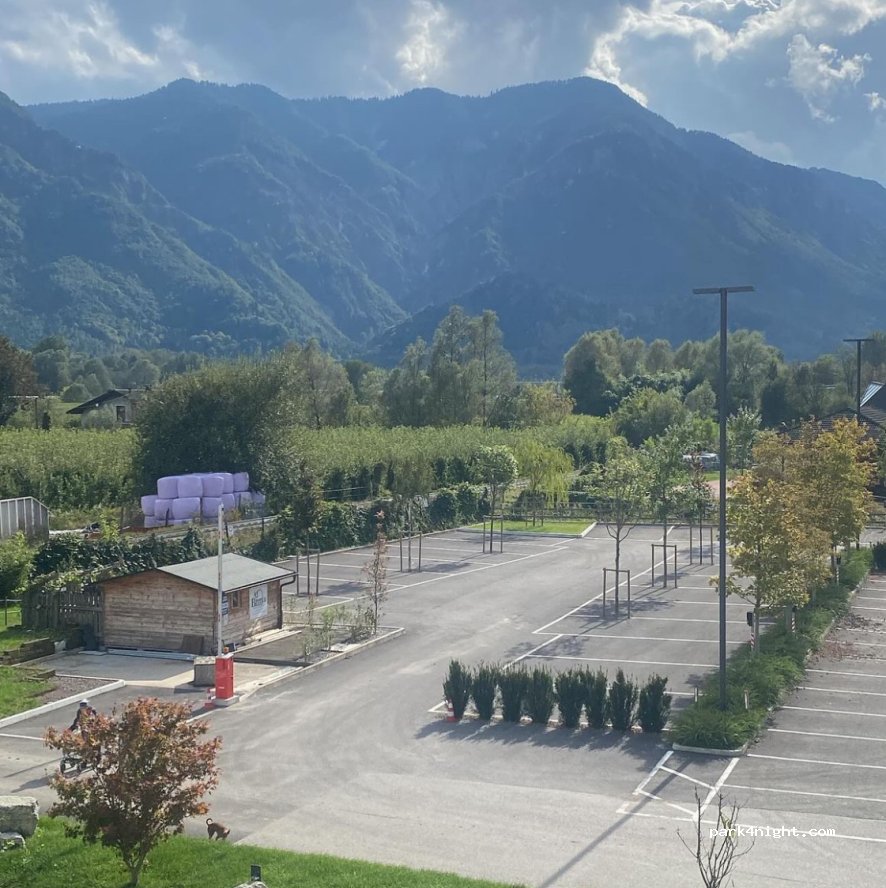 Parcheggio su sterrato pianeggiante. Appena arrivati, si procede alla registrazione presso l’albergo. Personale cordialissimo. 23€/24h. Corrente e C/S. Ad 1 km dal centro, comodo per visitare i banchetti natalizi. Torneremo sicuramente