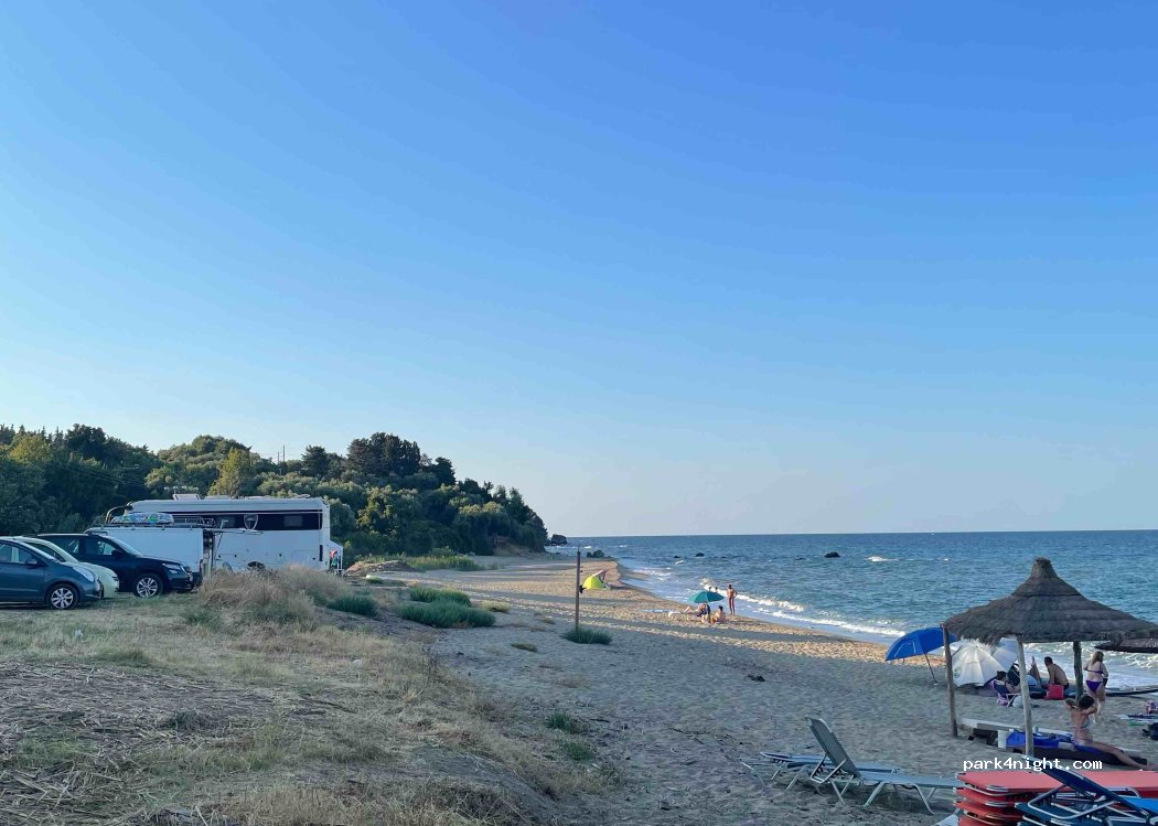 Mooie locatie aan het strand. De taverne op het strand was gesloten (april). Douche aanwezig. Toen wij er waren was het erg rustig, 1 andere camper en ‘s morgens een paar vissers.