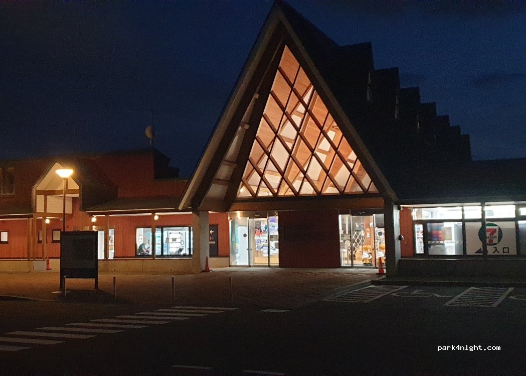 It is a parking next to the route with a convenient store and very clean 24h toilets. The WiFi works inside the building. The restaurants, stores and groceries work 9h-17h