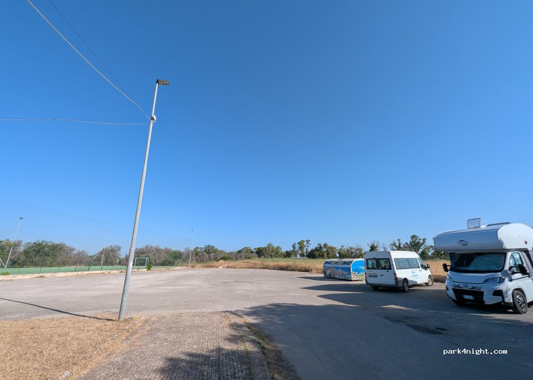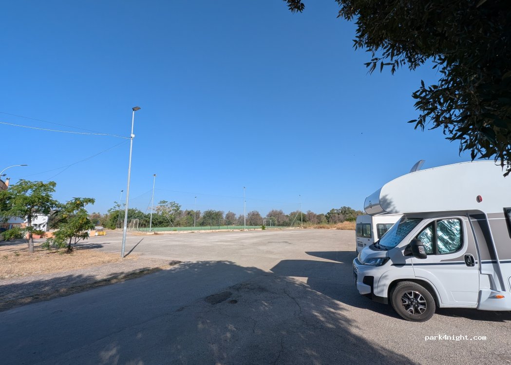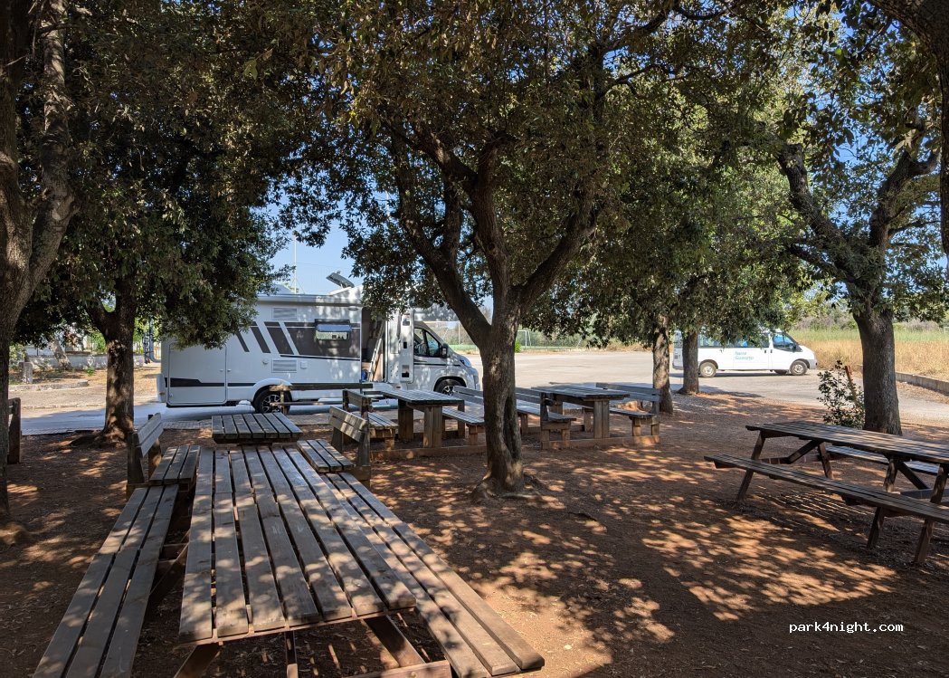 Consigliata dal centro stesso per la notte come alternativa al parcheggio ufficiale: lasciano infatti i bagni aperti a disposizione. Adiacente area pic nic ampia e curata, con tavolini all'ombra di lecci.