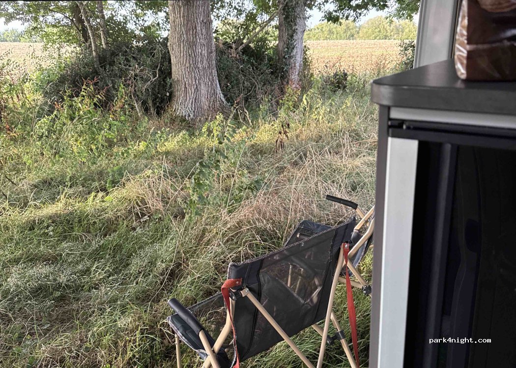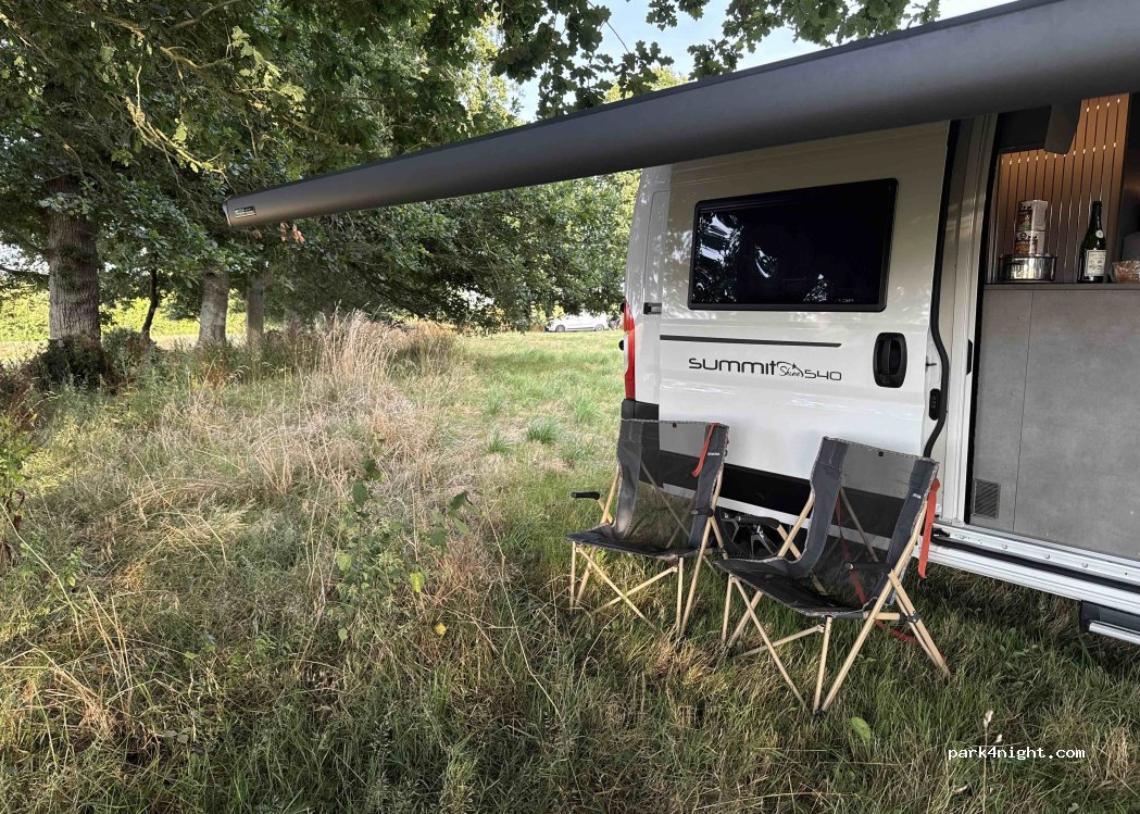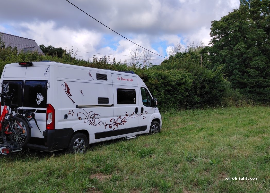 Un espace tranquille vous attend pour stationner en toute simplicité, idéal pour les voyageurs en van, camping-car ou voiture.