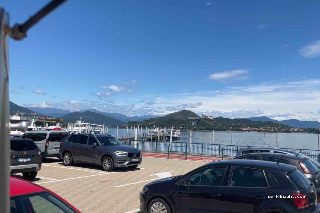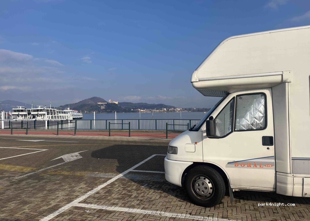 Grandissimo parcheggio sul lago, a 5 minuti a piedi dal centro storico. C'è una sbarra che limita l'altezza a 2.40, ma in questo momento (27 luglio 2025) è aperta e non ci sono divieti. È anche passata la polizia locale senza dire niente. Si può parcheggiare davanti al lago con bellissimo panorama, la notte è stata tranquilla, solo la musica di una discoteca, ma molto lontana sul lago. Bisogna arrivare presto, al massimo per le 10, per trovare posto.