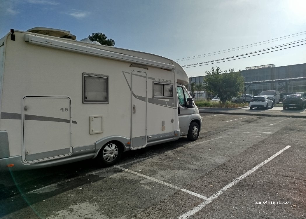 Aujourd'hui, nous avons passé sur ce parking d'E'Leckec, faute de place ni dans la zone camping-car ni sur les emplacements. Nous avons été un peu dérangés par le bruit des voitures qui passaient.