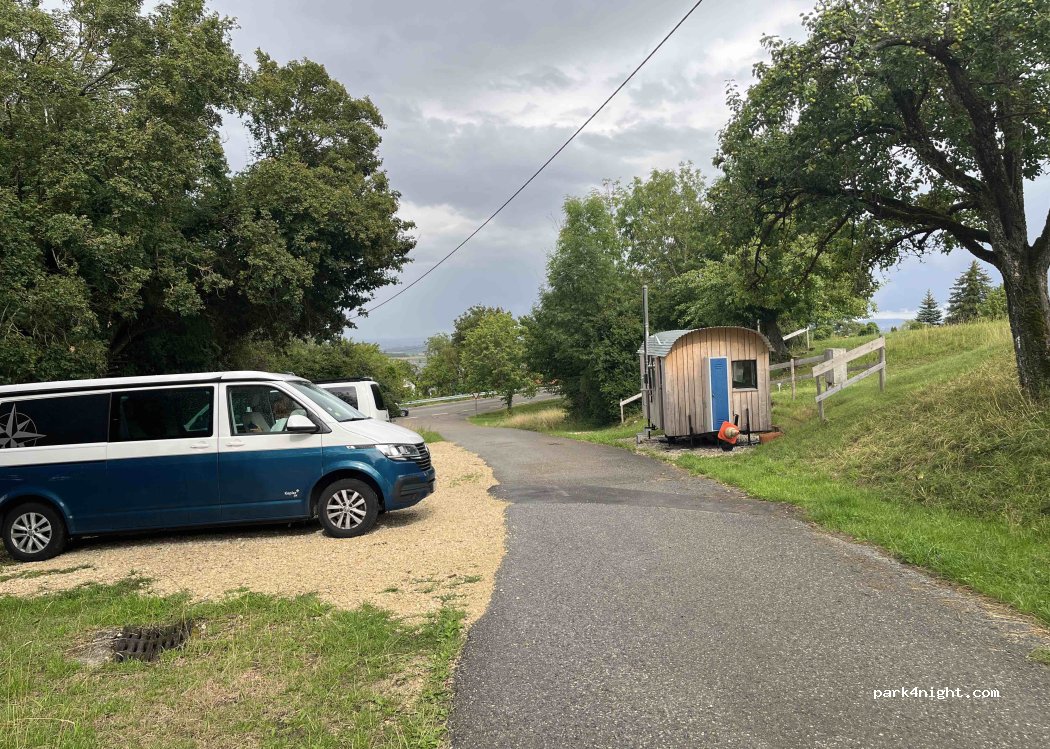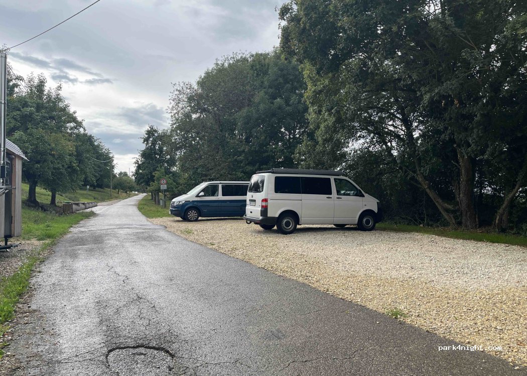 Kleiner Parkplatz für Wanderwege. Nicht weit von der Straße entfernt, aber auch nicht zu weit weg. Nach oben hin etwas flacher.