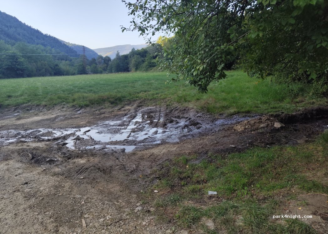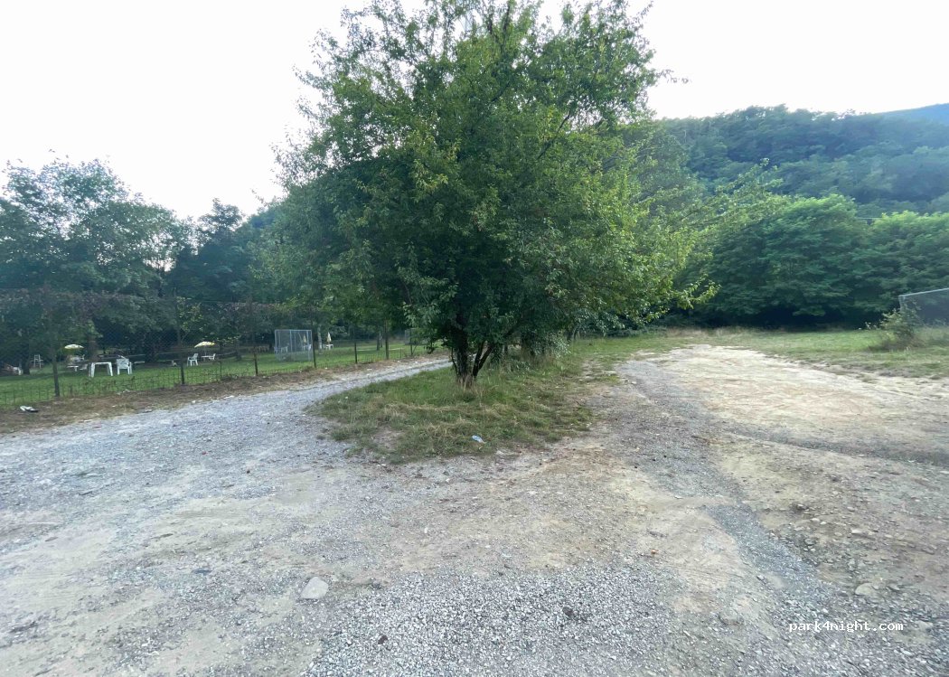 Ottimo spazio pianeggiante con zona ombreggiata. DI fronte al laghetto di pesca presso il ponte sospeso. Strada di accesso a carreggiata ridotta e con pendenza.