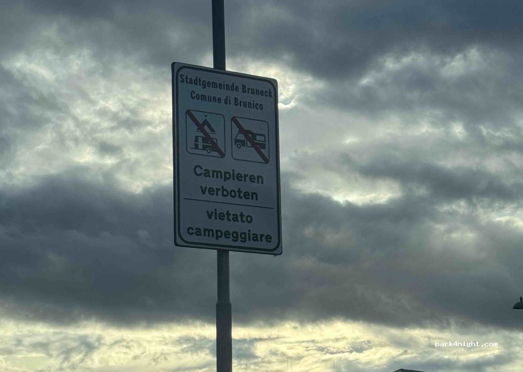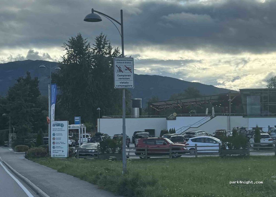 Dormito due notti senza problemi, nessuno mi ha detto nulla. E' vietato il campeggio, non la sosta. Per il codice della strada Italiano = no tavoli, no sedie, no finestre aperte, no livellatori. Non adatto a microvan improvvisati ma a veicoli autonomi.