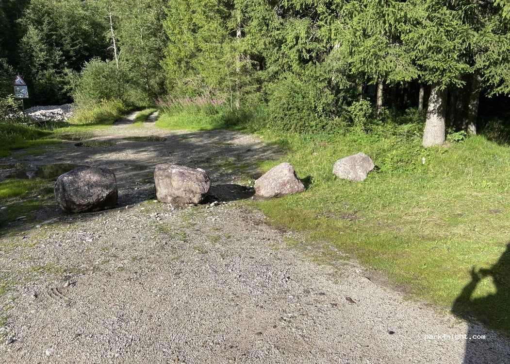 Área de descanso junto a la carretera con mucho espacio. Ligeramente inclinada. Paramos a pasar la noche.