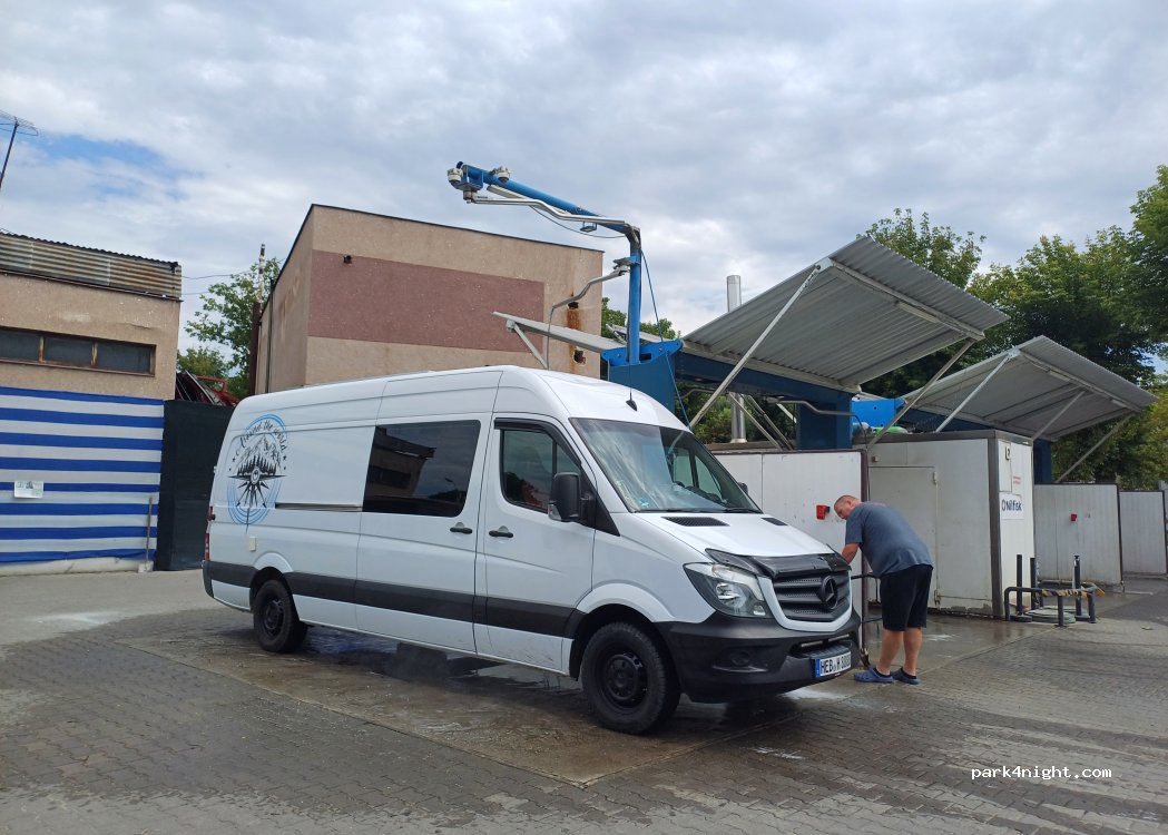 There's a really good self-service car wash with mat holders and a coffee machine there too.