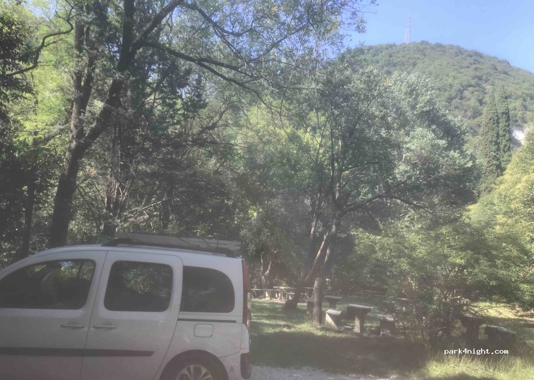 Near Salo', precisely at the Madonna del Rio, there is a place to park for free and stay overnight with excursions near the stream with waterfalls in the middle of nature.