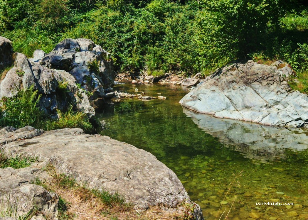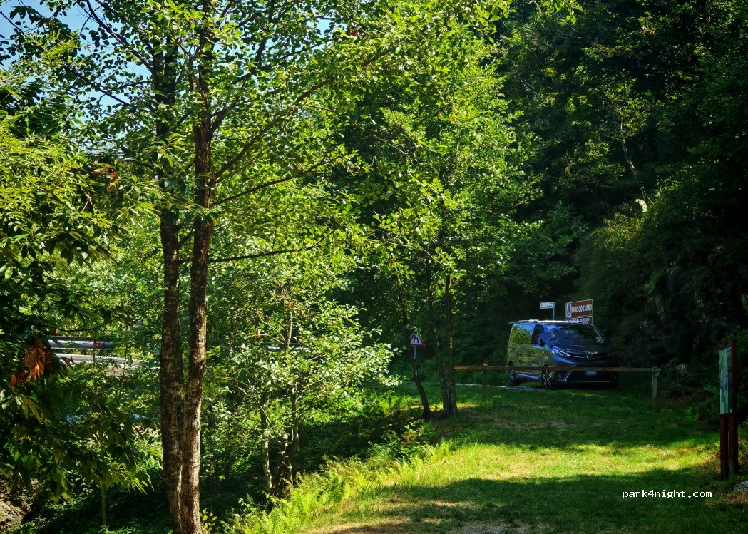 Parcheggio lungo strada nel angolo del punte, bello in ombra, da lì si accede direttamente al torrente con possibilità di fare un bagno e tuffarsi nel acqua fresca e cristallina. Il luogo viene curato dei pescatori del posto, quindi lasciatelo perfavore così bello e PULITO come lo avete trovato.. non lasciate spazzatura!