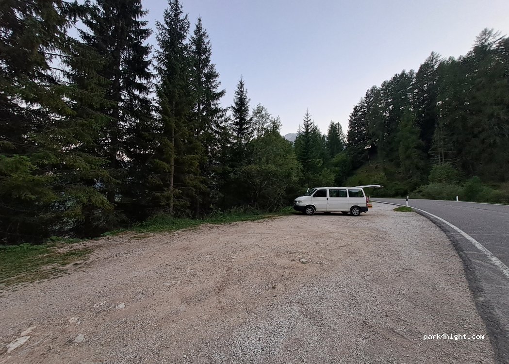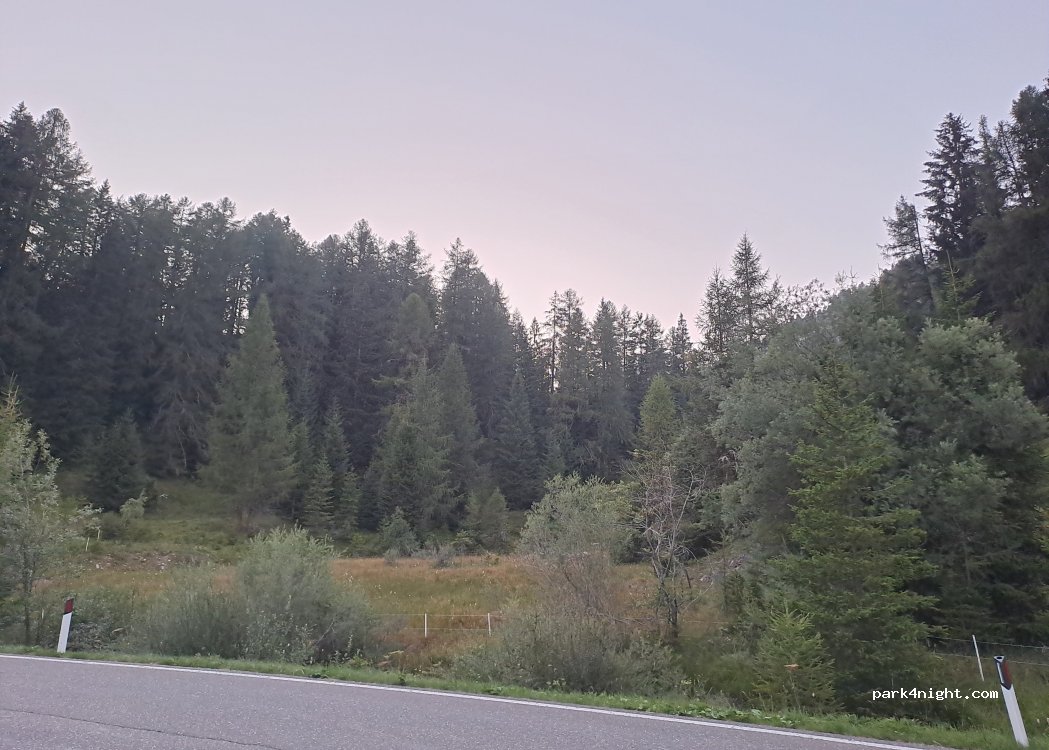 Un bel endroit au bord de la route, entouré d'arbres. En descendant un peu la route, vous trouverez un point d'eau.