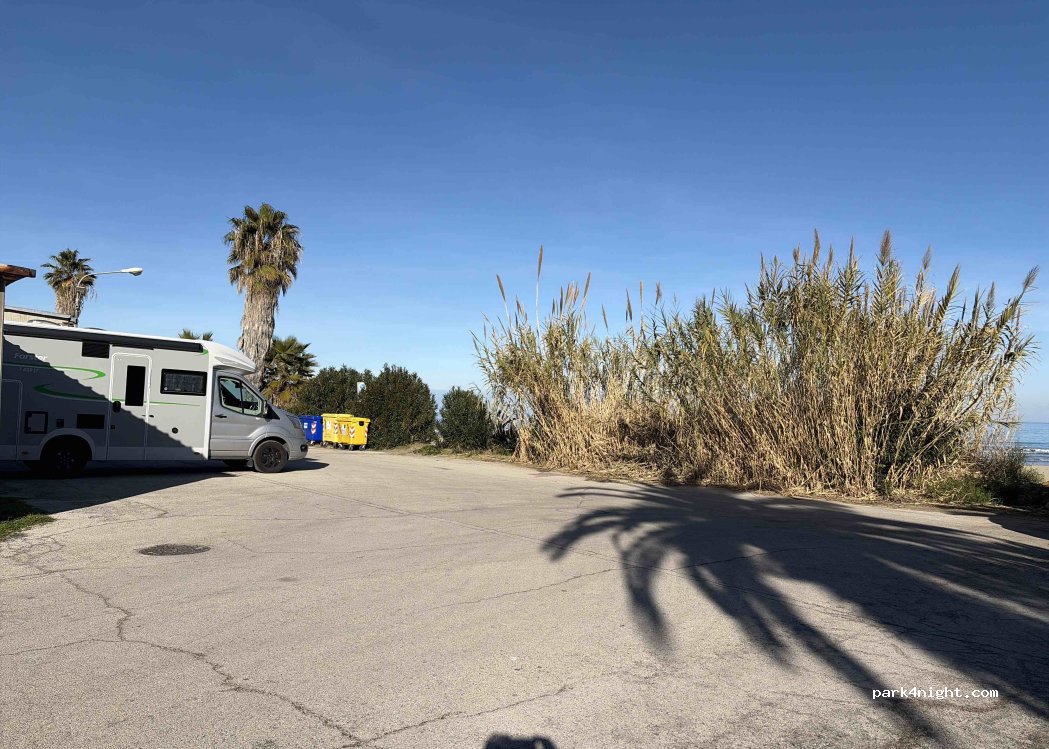 Der Platz hat uns nicht besonders gefallen. Für einen kurzen Stopp von 30–60 Minuten ist er in Ordnung, zum Übernachten haben wir ihn nicht genutzt. Es gibt die Möglichkeit, Wasser nachzufüllen, allerdings ist nicht klar, ob es sich um Trinkwasser handelt. Der Platz ist videoüberwacht. Die Stellplätze sind sehr klein, insgesamt etwa 5–6, und zudem schwer zu finden.