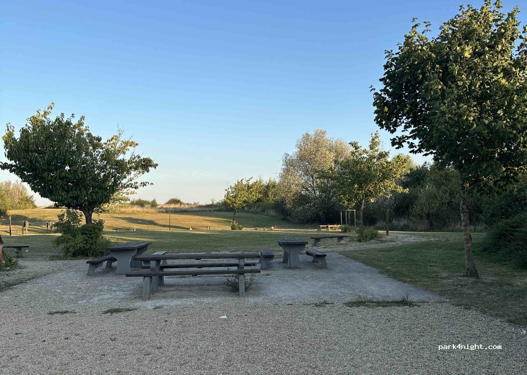 Truck parking along the highway, with a nice playground and plenty of picnic tables. Great for a stopover, quiet, but we didn't sleep.