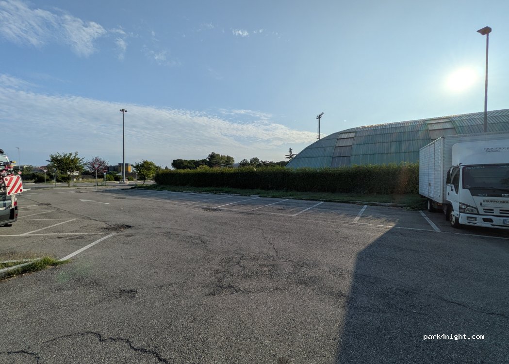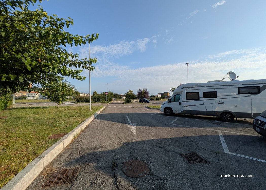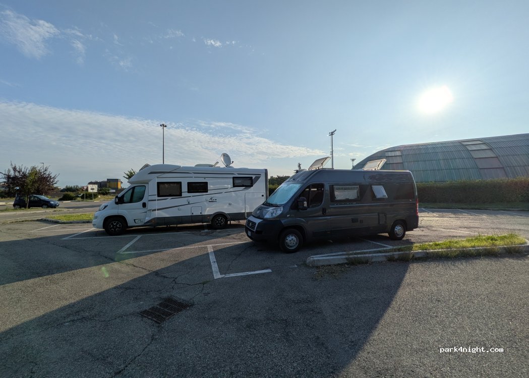 Dopo il tentativo fallito di ingresso nell'area sosta camper qui vicino causa impossibilità di pagare con il POS ci siamo fermati per la notte in questo tranquillissimo e ampio parcheggio gratuito antistante al campo sportivo comunale. discretamente illuminato, molto tranquillo, perfetto per una notte di sosta.