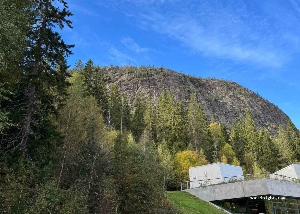 Super Platz für Ver- und Entsorgung, Wanderungen lohnen sich sogar bei Regen. Übernachten möglich, man steht zumindest nicht direkt an der E4. Maximal 12 Stunden Parkzeit.