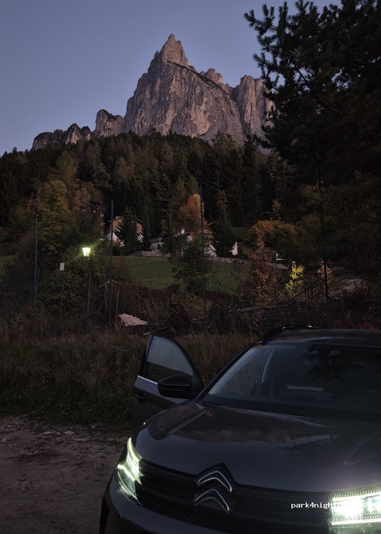 Passamos uma noite no local e foi super tranquilo, pouco barulho de carros na rua pela noite, não tem nem uma placa de proibição e não tivemos nenhum problema, havia nossa autocaravana e outras duas vans. Ótimo local para pernoitar e ir cedo a Seiser Alm