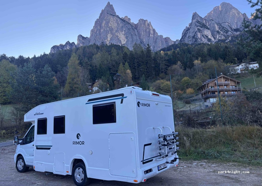 Considerati i pochi posti che l’Alpe di Siusi permette ai camper, confermo che questo è un ottimo posto, pianeggiante e con vista sul paese di Siusi. Molto valido, può ospitare fino a 4/5 Van.