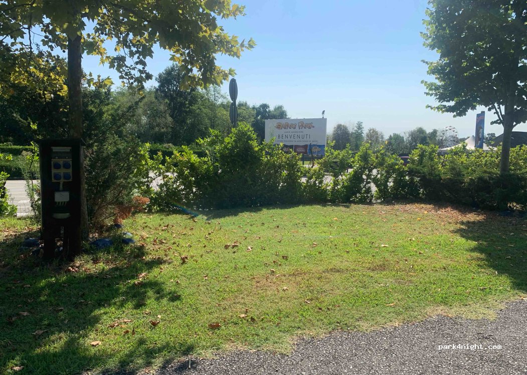 Grosse surprise pour nous.Nous passons devant et nous nous arrêtons .Acueil super top avec une super personne parlant un super français .L'entrée au parc pour deux jours au prix d'un.Le camping est sommaire mais tout y est.le parc est top aussi.je recommande cet endroit.genial mais oui attention au moustiques.Comme partout en Italie du nord .prevoir les produits qui vont bien.