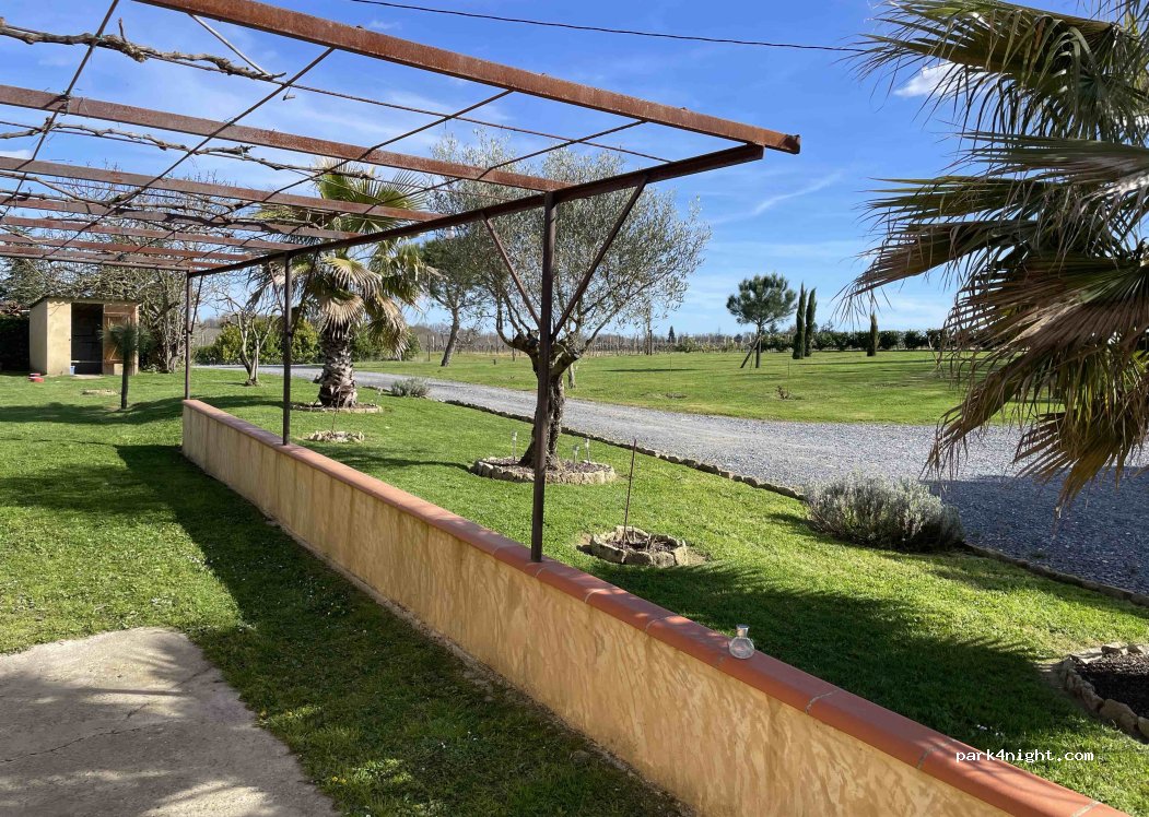 Overlooking the vineyards, the pitch is situated on a stable paved path.