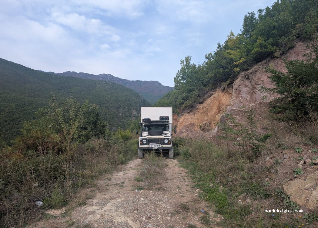 Después de un día muy largo, esta fue una parada nocturna muy útil, tras unas carreteras de montaña sin desvíos. El camino es un callejón sin salida, así que hay que dar marcha atrás. Acceso y aparcamiento nivelados. Accesible para cualquier vehículo, pero es estrecho.