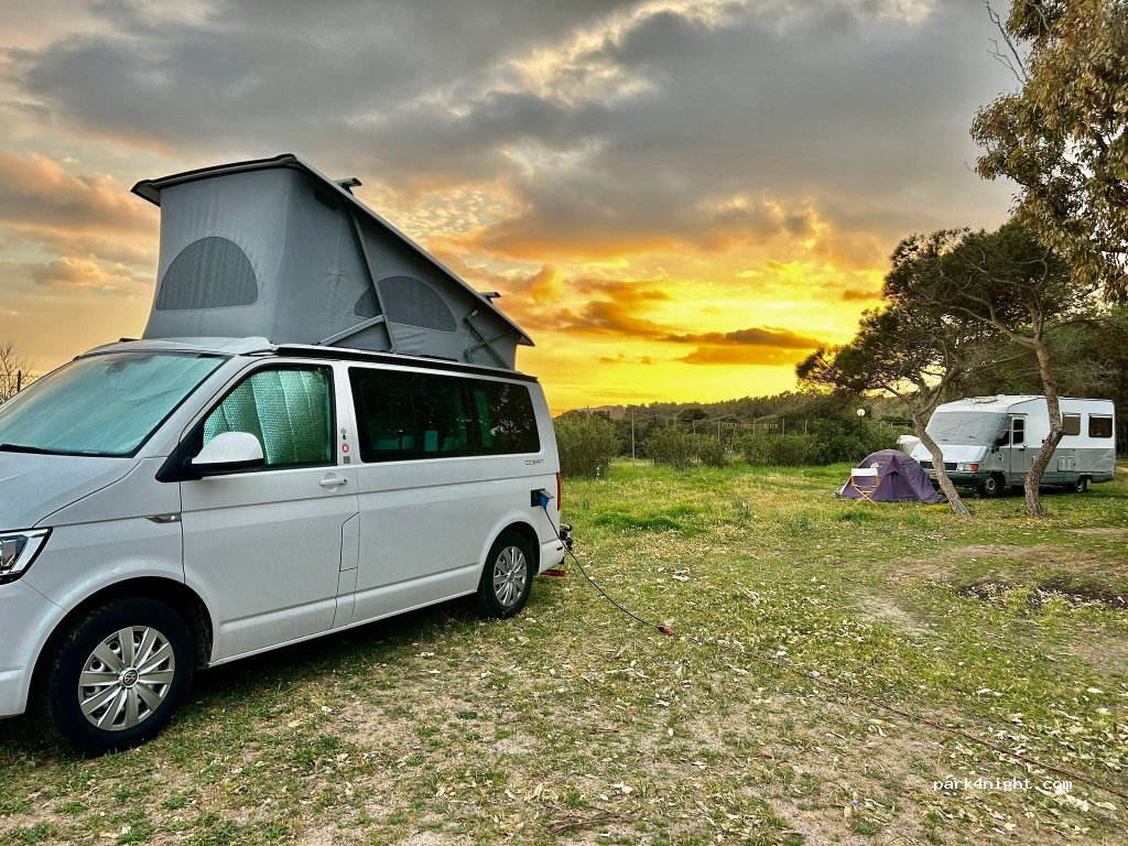 An excellent campsite open all year, next to the beach and near Roman remains at Nora. A few other lovely beaches walkable and short drive to Chia with its beach and lagoon with flamingos. Spent 4 days here. Loved it!