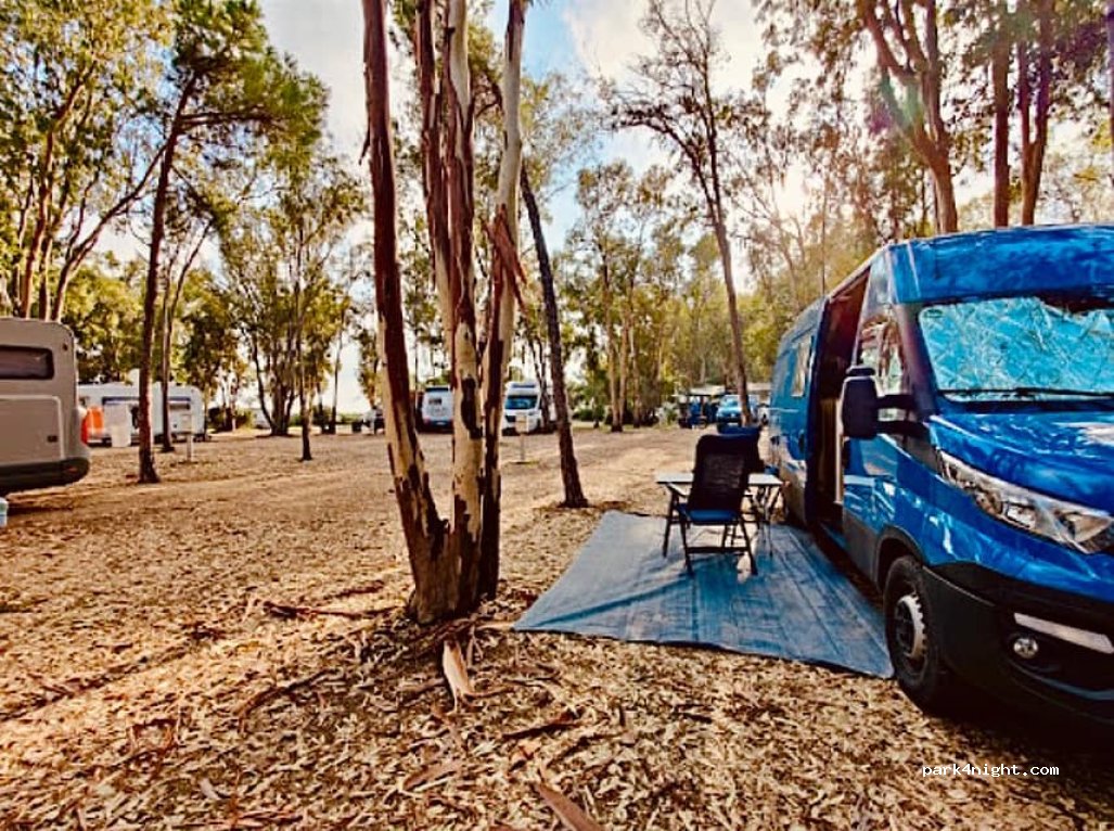 Freie Platzwahl im Eukalyptuswald. Manche Plätze bieten Meerblick. Der Platz ist schön, beinhaltet einen kleinen Mini Markt mit Café und Restaurant und ist für 2 Personen mit Strom 26€/Nacht recht günstig. Die Sanitäranlagen sind leider nicht sehr schön, aber ausreichend. Die meisten Toiletten haben keine Klobrille und keine hat Klopapier. Das warmwasser kostet 0,7€/3 Minuten, ist aber schnell warm und hat einen super Strahl. Der Strand am Platz ist im September sehr leer.