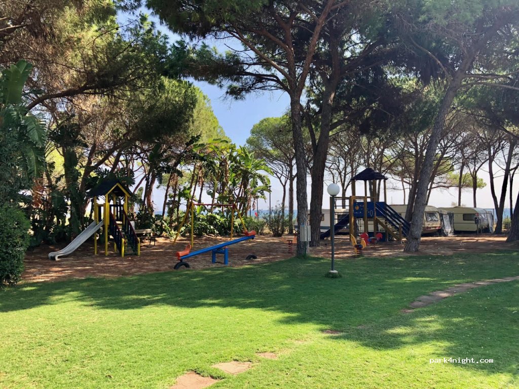 Met direct uitzicht op de zee (50 m van zand- en rotsstranden), ligt Cala d'Ostia ondergedompeld in een weelderig groen gebied van meer dan 75.000 m2 dennen en eucalyptus (190 afgebakende en uitgeruste plaatsen, 70% schaduw), een oase van stilte, vrede en rust, perfect voor een ontspannen vakantie in contact met de natuur.