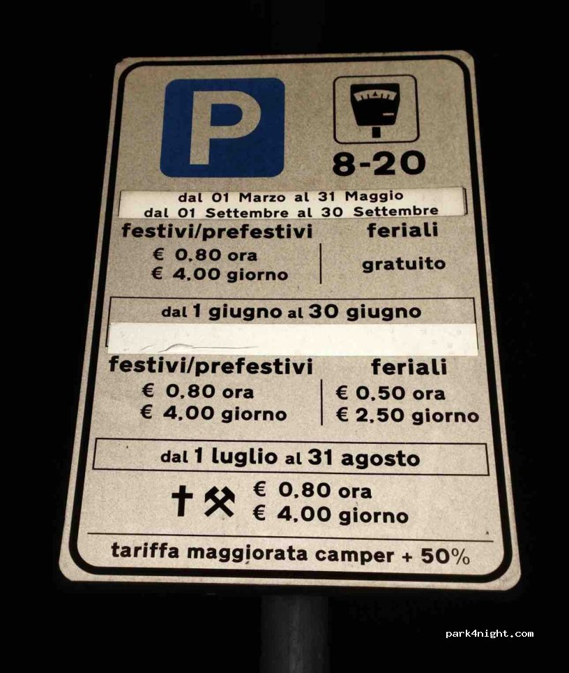 Ampio parcheggio ben livellato si paga anche poco, peccato che il comune non metta a disposizione dei servizi di carico e scarico come fanno altre amministrazioni. Mare vicinissimo con delle pinete x passeggiate o in bici.