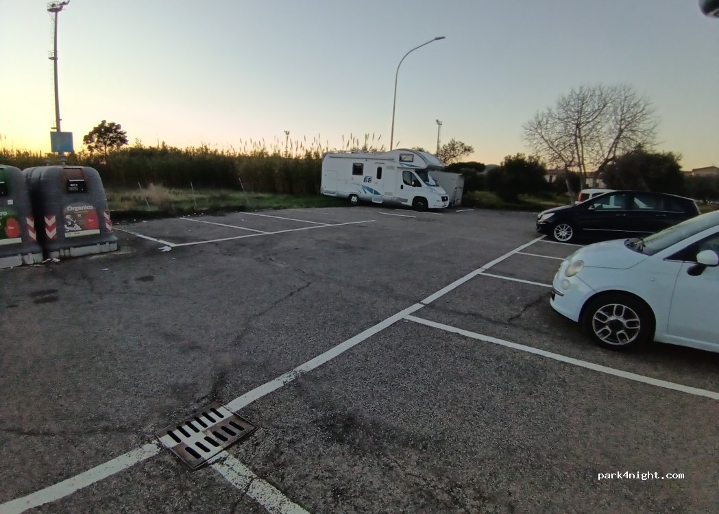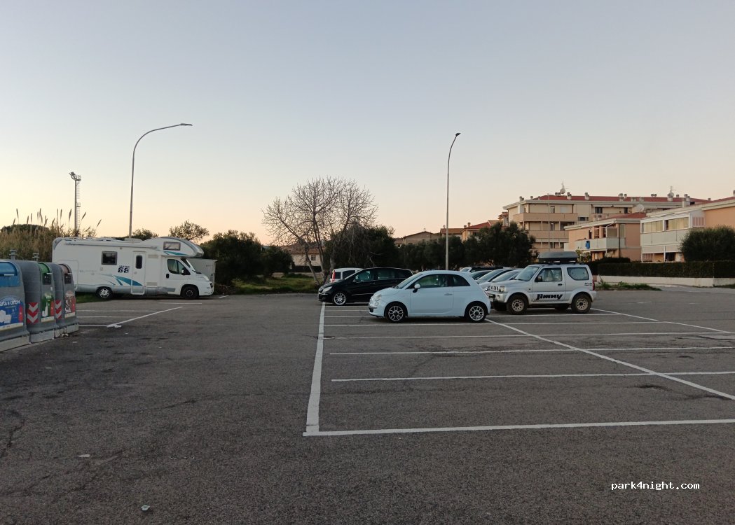 Parking près des services du hameau de Fonteblanda. Vaste et plat. Généralement calme, sauf lors de la fête foraine estivale sur le terrain de sport voisin.