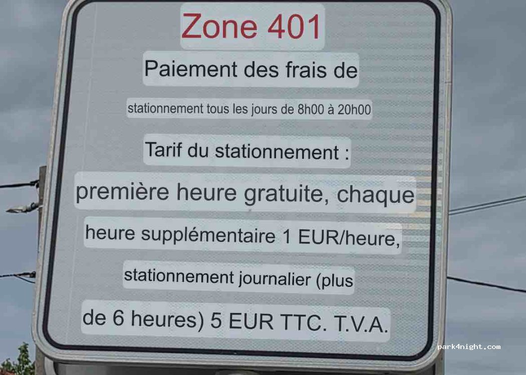 Parkování pro návštěvu města. Platba 8-20 přes aplikaci nebo na stojanu, který je ale u hlavní silnice. 1hod/1€, max 6€. První hodina zdarma .