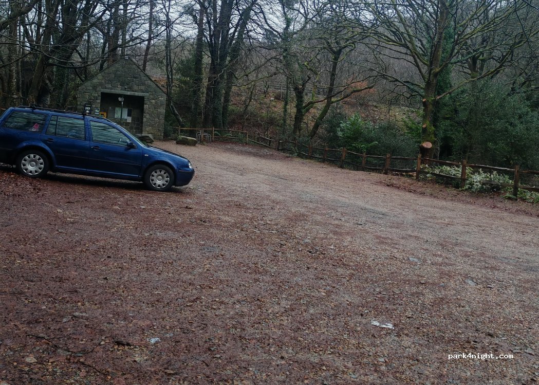 Paid parking. Peace and quiet, surrounded by forest and mountains.